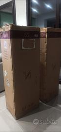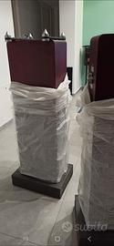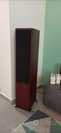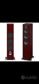Splendidi Diffusori S5 colore mogano della famosa casa Quad dall'elevata qualità Inglese. Rarissimi, nella colorazione mogano, conservati in maniera impeccabile completi di scatoli originali e documentazione con guanti in cotone per l'istallazione ancora sigillati a corredo. Descrizione: diffusore da pavimento a 3 vie in cassa chiusa con radiatori passivi (abr) – 1 tweeter a nastro da 12×45 mm – 1 midwoofer con cono in fibra di carbonio e sospensioni in gomma da 125 mm – 2 woofer con cono in fibra di carbonio e sospensioni in gomma da 165 mm – 3 radiatori passivi da 125 mm – risposta in frequenza 42 hz – 23 khz – estensione in gamma bassa (-6 db) 35 hz – impedenza nominale 6 ohm (minima 3.2 ohm) – efficienza 90 db – crossover con componenti audiophile grade, incroci a 570 hz e 3.2 khz – potenza amplificatore raccomandata da 25 a 100 watt – connettori predisposti per bi-wiring e bi-amping – dotato di base con punte coniche regolabili – finitura sapele mahogany (mogano africano) Configuration:Two-way floorstander Tweeter:12x45mm True Ribbon Midrange driver:125mm woven Kevlar Bass drivers:165mm woven Kevlar x2 Bass system:165mm ABR x3 Sensitivity:90dB (2.83V @ 1m) Recommended amp power:25-100W Nominal impedance:6 Ohms Frequency response:42Hz ~ 23kHz (+/- 3dB) Bass extension:35Hz Crossover Frequency:570Hz & 3.2kHz Cabinet Volume:72.4L Dimensions (HWD):1070x205x330mm
