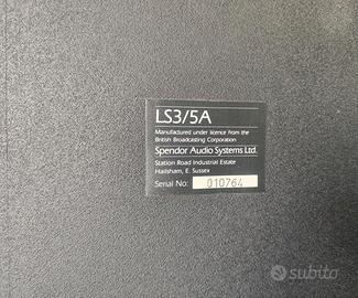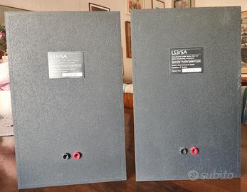 Coppia di Spendor LS3/5A, modello iconico di diffusore acustico nato originariamente per monitorare le trasmissioni televisive della BBC.