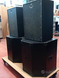 Coppia subwoofer usati - 1200/3000 watt - 4 ohm - legno mdf 18mm- misure 110x53x54 cm - verniciatura antigraffio- attacco morsettiera sul fondale.
