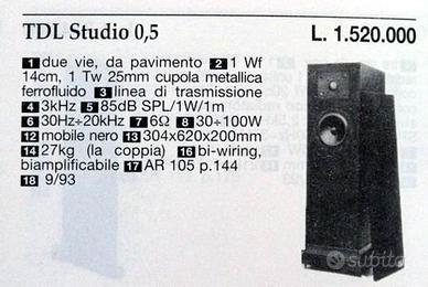 Vendo diffusori in linea di trasmissione della TDL, le piccole Studio 0.5, grande basso, controllato e profondo, ma anche ottima scena e trasparenza, cercare in rete opinioni si questi diffusori, sono tutte positive.