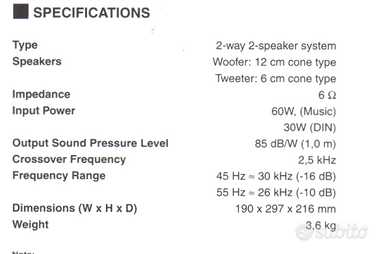 Vendo coppia diffusori Technics SB-HD50A Anno 1997
