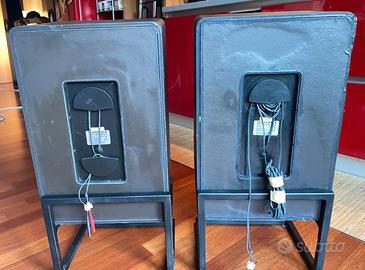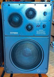 Per VERI amanti dei diffusori Vintage, quelli davvero ben suonanti e non soltanto perché sono datati, cedo questa coppia di stupendi diffusori in sospensione pneumaticaTelefunken TLX 3 Professional, praticamente INTROVABILI. Suonano divinamente, basso fermo e granitico, ottima la definizione sugli alti, mai stancanti nonostante i diffusori Tedeschi abbiano questa fama. In realtà ho posseduto altri diffusori Tedeschi, Canton, Telefunken, Grundig, e queste tra tutte sono le casse più equilibrate che ho sentito. Ottimo anche il palcoscenico con voci sempre al centro, se posizionate correttamente, cosa non difficile, le casse spariscono. Generi prediletti? Ci ho suonato di tutto, mi sono piaciute in tutte le situazioni, e devo dire che a differenza di tanti diffusori Vintage queste suonano ottimamente anche con sonorità più moderne fino a spingersi nell’ Heavy Metal, ci ho suonato il Black Album dei Metallica e ho dovuto tener fermi i vetri di casa !!! Non si scompongono minimamente !! I mobili hanno segni del tempo abbastanza “vistosi” e da qualche parte nella loro lunga vita devono aver preso una botta sul mobile che, come si vede in foto, è stat riparata alla meglio. Non sono primo proprietario quindi non conosco la storia. Quello che posso dire è che SUONANO DIVINAMENTE e che elettronicamente sono a posto. Se poi un eventuale acquirente avesse voglia di mettere mano ai crossover, non penso che alle casse faccia male, ma allo stato attuale, per come suonano, se dovessi tenermele io le lascio così perché non vedo che miglioria potrebbe apportare qualsiasi intervento a livello sonoro. Le vendo SOLAMENTE perché devo far spazio in casa. Ho altri diffusori in vendita, se vendo prima quelli queste Telefunken rimarranno qua, quindi consiglierei a chi fosse interessato di decidersi in fretta. Gli stand in foto NON sono inclusi e non vengono venduti separatamente. Il prezzo di queste casse NON è in alcun modo trattabile, chi le compra può fare tranquillamente ricerch
