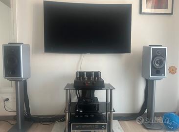 Diffusori EsseQuadro Sfratis s1 mk2 Vendo coppia diffusori Essequadro Stratis S1 MK2 - High End Made in Italy In perfette condizioni, pochissimo usati, come nuovi. I Stratis S1 sono i monitor bookshelf di Essequadro (Trieste) che hanno ricevuto ottime recensioni per il loro suono naturale, dettagliato e coinvolgente. • 2 vie bass reflex a caricamento frontale • Woofer SEAS 146 mm con cono in carta • Tweeter Scanspeak 28 mm silk dome • Sensibilità 88 dB – Impedenza 8 Ω (min 5,9 Ω) • Design elegante e cabinet di altissima qualità Suono raffinato, medio-alti dolcissimi, bassi controllati e veloci. Ideali con ampli a valvole o solid state di qualità. Prezzo: 2200€ (trattabili) Spedizione possibile o ritiro a mano Foto disponibili su richiesta o già caricate. Contattami per info o per ascoltarli!