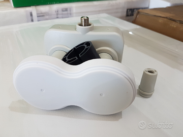 Doppio illuminatore con collo da 23mm e adattatore per collo da 40mm. Gommino di protezione per connettore in dotazione.