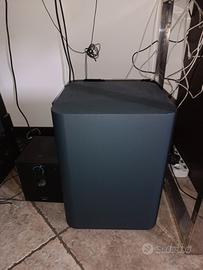 per passaggio a sistema home Teather tradizionale, vendo soundbar acquistata da appena un anno, perfettamente funzionante e completa di tutto, scatola(non visualizzato in foto), accessori e fattura di garanzia ancora valida per un anno. La soundbar è un sistema 7..1.4 con quattro Atmos, due sulla barra e due sui satelliti rimovibili posteriori. il subwoofer wifi ha cono da 10" quindi molto potente. Disponibile a prova in casa con film blu ray Dolby Atmos Top Gun Maverick per fare capire l'effetto Atmos ed il suono 3D
