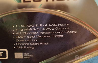 Distributore con fusibiliera Audison, fino a 4 finali oppure 3 finali e 1 condensatore, prodotto di grande affidabilità e qualità, realizzato in Italia, in omaggio i fusibili del valore che desiderate.