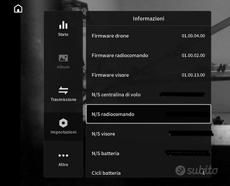 Descrizione: Vendo per passaggio a sistema di altro marchio kit DJI Avata 2 in versione Fly More Combo (3 batterie), acquistato il 19 Luglio 2025. Il drone è in condizioni estetiche e funzionali perfette., ha solo 49 minuti di volo. Le batteria hanno 1 solo ciclo di ricarica. Ancora tutto in garanzia e con DJI Care Refresh ancora attiva!!! A differenza del pacchetto standard, questo kit include anche il DJI FPV Remote Controller 3 (acquistato lo scorso gennaio e non è mai stato utilizzato a causa delle mie lunghe trasferte, quindi ha ancora quasi 2 anni pieni di garanzia), indispensabile per chi vuole volare in modalità Manuale (Acro) e avere il massimo controllo del mezzo, oltre al Motion Controller incluso nella combo. Il pacchetto include: Drone: DJI Avata 2 Visore: DJI Goggles 3 Radiocomandi: DJI RC Motion 3 + DJI FPV Remote Controller 3 (valore circa 150€, ma ripeto che è nuovo acquistato a Gennaio 2026) Batterie: 3 Batterie intelligenti con 1 ciclo di ricarica Accessori: Stazione di ricarica bidirezionale, borsa a tracolla originale DJI, set di eliche di ricambio, cavi e protezioni originali. Extra: DJI Care Refresh ancora attiva per un anno, con possibilità di rinnovo. La maggior parte degli accessori e dei ricambi interni sono ancora sigillati. Consegna: Do priorità alla consegna a mano in zona per qualsiasi prova, oppure spedizione tracciata tramite TuttoSubito. Note: Potrei vendere separatamente il controller FPV3, ma considerando che è praticamente nuovo non accetto offerte ridicole. No perditempo, non scambio con nulla, no offerte ridicole, prezzo già trattato.
