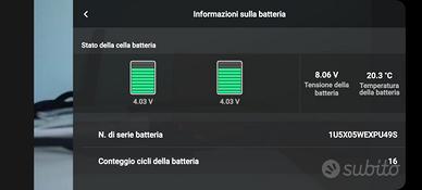 3 Batterie originali in perfette condizioni (cicli di ricarica ridicolmente bassi: 7, 16, 16 - celle bilanciate in modo impeccabile come visibile dagli screenshot dell'app).