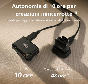 Connessione diretta all'ecosistema DJI - Con DJI OsmoAudio, un trasmettitore può connettersi a Osmo Action 5 Pro, Osmo Action 4 o Osmo Pocket 3 senza il ricevitore, offrendo audio premium attraverso un setup compatto di microfono wireless.