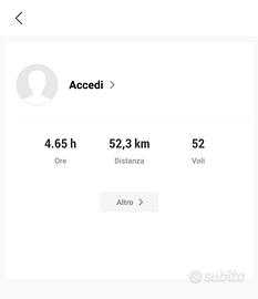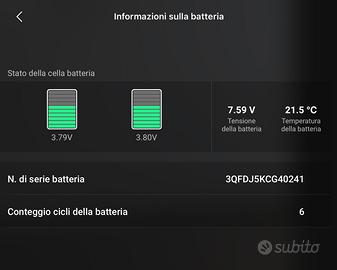 Vendo DJI Mini 2 Fly More Combo in condizioni perfette, usato pochissimo. Il drone è pari al nuovo e funziona perfettamente. Le batterie hanno solo 6 cicli di ricarica, quindi praticamente nuove. 4h e 65 minuti di utilizzo per 52km in 52 voli (vedi ultima foto) praticamente nuovo. Contenuto della confezione: •DJI Mini 2 •Radiocomando originale •3 batterie originali •Hub di ricarica multipla •Borsa originale DJI •Eliche di ricambio •Cavi e accessori originali •Accessorio extra per agganciare tablet Drone leggero e compatto (meno di 249g), con video 4K, stabilizzazione a 3 assi e ottima autonomia. Vendo per inutilizzo. Preferenza per consegna a mano Possibile spedizione con Subito.it Per qualsiasi informazione scrivetemi pure