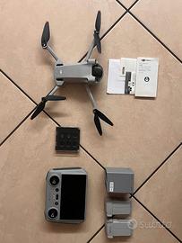 Dji mini 3 pro, dji rc2, 2 batterie e carica, 7 filtri per telecamera, set di ali di ricambio, cavi di ricambio e valigetta.