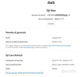 DJI NEO in garanzia e con DJI Care Refresh - Piano di 2 anni pagata €.38