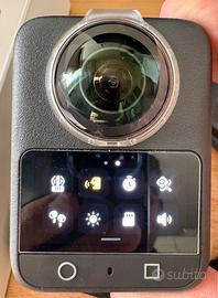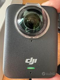 Action cam DJI Osmo 360, completa di stick invisibile originale, 3 batterie con stazione di ricarica da tre posti originale, cover in gomma originale, in omaggio copri lenti trasparente antigraffio, e custodia in silicone antiscivolo, cavo usb C di ricarica, custodia in neoprene antiurti, vetrino copri schermo antigraffi + 2 in piu omaggio.
