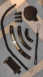 Insieme alla camera vendo il kit di accessori tra cui prolunghe di lunghezza diversa, laccio corto da polso e lungo da collo, supporto magnetico, a morsa e adesivo... Comodo per ogni situazione.