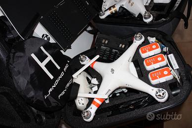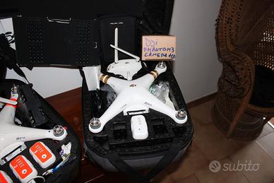 Buongiorno a tutti Do via per inutilizzo e per cambio progetto dji phantom 3 advanced (strisce arancioni) e professional (strisce Dorate) il modello advanced monta una telecamera 4k anziché che la HD e a 4 batterie il telecomando e la tracolla lo zainetto e incluso nel modello advanced sempre nel modello advanced e compreso il paraluce per tablet ed le lenti in vetro polaroid (mostrate in foto in più vene dato il modello professional (strisce Dorate) come pezzi di ricambio o donatore per l’advanced in quanto montano praticamente gli stessi pezzi che sono caricatore telecomando e zainetto e in più e presente una telecamera ghimbal 4k ed una HD Caricatore simultaneo (non originale) a 4 batterie eliche di ricambio, tracolla (tipo zainetto) minuterie vare per info ho altre foto sono a vostra disposizione