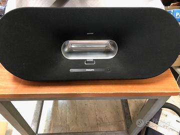 Dockstation PHILIPS compatibile Iphone 3, Iphone 3G, Iphone 3GS, Iphone4, Ipad, Ipod. Ingresso AUX per collegare qualsiasi dispositivo audio con presa jack 3,5mm. No telecomando, completo di cavo alimentazione e cavo AUX. Ottime condizioni, audio potente, usata pochissimo.
