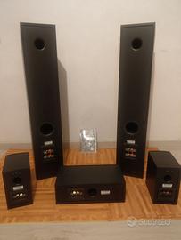 Jamo S 526 HCS. Canali di uscita audio: 5.0, Home theatre NUOVO Incelofanato tirato fuori dall'imballaggio per foto da inserire nell'annucio vendita su subito con un design danese effetto legno, rivestimento bellissimo. Il dolby 5.0 della Jamo offre un'esperienza audio surround immersiva con prestazioni sonore solide. Caratteristiche: Tipo di altoparlante satellite: 2-voies Potenza dei satelliti RMS: 80 W Gamma di frequenza dell' altoparlante satellite: 80 – 20000 Hz. Tipo di altoparlante frontale: 2-voies Potenza RMS altoparlante frontale: 130 W Rango di frequenza del altoparlante frontale: 45 – 20000 Hz. Tipo di altoparlante centrale: a 2 vie Potenza dell' altoparlante centrale: 100 W RMS Gamma di frequenza dell' altoparlante centrale: 75 – 20000 Hz. Fonte di alimentazione: corrente Preferibile ritiro in zona, possibilità di spedizione su richiesta. Spese di spedizione escluse dal prezzo indicato.