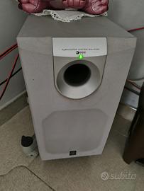 Impianto Home Cinema 5.1 Yamaha (Sintoamplificatore + Casse + Subwoofer) Descrizione: Vendesi impianto audio Yamaha completo, sistema 5.1 ideale per cinema, gaming e musica. L'impianto è perfettamente funzionante e offre il caratteristico "Natural Sound" di Yamaha, con bassi profondi e dialoghi cristallini. Il set include: • Sintoamplificatore AV Yamaha HTR-5830: Supporta Dolby Digital, DTS e Pro Logic II. Numerose modalità DSP per ottimizzare l'audio di film e musica. • Subwoofer Attivo Yamaha SW-P130: Tecnologia Advanced YST per bassi potenti e controllati nonostante le dimensioni compatte. • Set di 5 Diffusori: 1 Canale Centrale (orizzontale) e 4 Satelliti (frontali e posteriori) per un audio surround avvolgente. • Accessori: Cavi di collegamento inclusi. Stato del prodotto: L'impianto è in buone condizioni estetiche e funzionali (come da foto). Segni di usura minimi che non pregiudicano la qualità del suono.