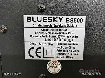 Vendo, per non utilizzo, come da descrizione dolby sorround 5.1 perfettamente funzionante, unico difetto il potenziometro del volume sull'ampificatore che gracchia quando si alza e abbassa il volume, ma se pulito si risolve. Ogni cassa ha la sua base da applicare sotto.