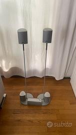 Come da titolo vendo 5 satelliti jbl con due colonnine e due supporti a parete ,segni di normale usura ma perfettamente funzionanti .senza sub (non piu recuperabile)prezzo trattabile !