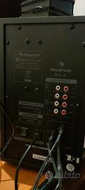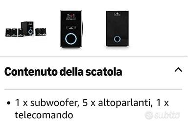 vendo dolby surround 5.1 auna causa inutilizzo , apparecchio usato poco ( presenta ancora pellicola sullo schermo ) dotazione 1 sub 100w , 5 casse 25w , 1 telecomando, prezzo trattabile