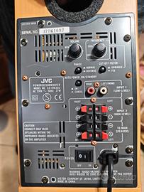 Speaker System Dolby Surround 5+1 della JVC elegante, tutto in metallo e legno. Usato pochissime volte. Subwoofer attivo. Compreso di Scatole sia subwoofer che colonnine e cavi di collegamento. Ritiro a mano cerveteri Ladispoli 4 colonnine 100 watt 8 ohm 1 Subwoofer 100 watt 8 ohm 1 centrale