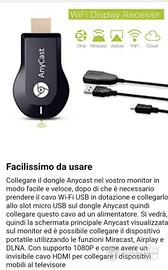 Vendo Anycast Dongle Wifi nuovo, collega tramite porta HDMI del tuo TV o Monitor, il tuo Smartphone o Tablet in pochi semplici passi, tramite collegamento Wi-Fi. Immagini reali,oggetto visto e piaciuto, non si accettano resi. Astenersi perditempo. Prezzo non trattabile.
