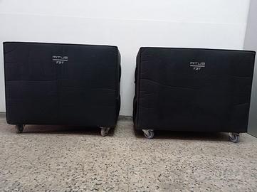 2 FBT MITUS 218SA, 2 x 18 "subwoofer Bass Reflex, Amplificatore di classe D 2000 W RMS. Ideale per Grandi Spazi All’aperto . Pressione Sonora Impressionante . I SUB sono stati acquistati NUOVI 7000€.la coppia 3499€ Cad uno . NON Vendo SEPARATAMENTE SOLTANTO IN COPPIA 4000€. Usati veramente pochissimo ,Perché uso più spesso un altro impianto con singoli 18 . I Sub sono Tenuti davvero in Maniera Impeccabile , sempre attenti nel trasporto cosi come lo si evince nelle Foto . Perfettamente funzionante nessun difetto di nessun genere . Vendo per passaggio ad un altro Sistema. Possibilità di testarli prima dell'acquisto . Cover Imbottiture FBT ORIGINALI comprese nel prezzo (comprate da me a parte) .pagate 400€.