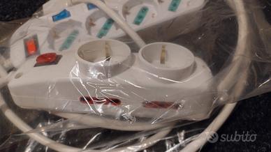 Due multiprese: una con 4 prese schuko in interruttore, l'altra con 2 prese schuko e 4 italiane