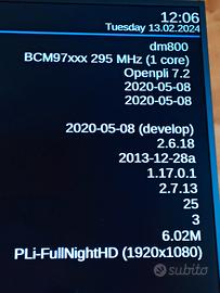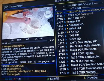 in ottimo stato, SIM 2.01, immagine OpenPli 7.2 già programmato configurato con settings aggiornati, immagine compatibile con IPTV, decoder fornito di Digital Key Sky per abilitazione Turner ricezione canali del digitale terrestre. Supporta adattatore WiFi per connessione WLAN, scheda di rete perfettamente funzionante.