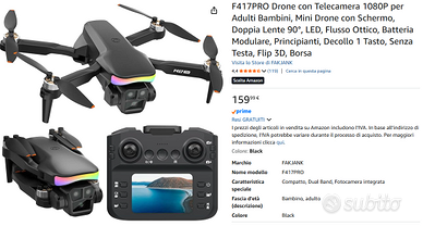 Regalo non gradito, aperto ma mai utilizzato, pari al nuovo. bellissimo drone adatto a tutti (no patentino) e con telecomando incluso di schermo. Radiocomando Smart con Schermo Telecamera 1080P e Inclinazione 90° Posizionamento Stabile a Flusso Ottico