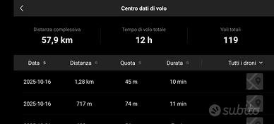 Utilizzo reale certificato dall’app DJI: solo 12 ore di volo totali, per 58 km percorsi.