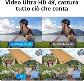 Video 4K ultra stabilizzato [8]: che tu stia facendo un'escursione, andando in canoa o semplicemente passeggiando in un parco in una giornata ventosa, la tecnologia di stabilizzazione di DJI, la resistenza al vento di livello 4 e la registrazione 4K UHD si combinano per garantire video fluidi e di alta qualità.