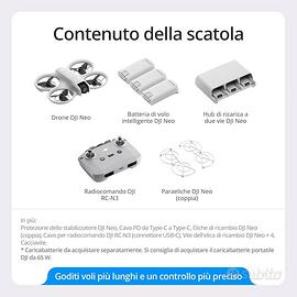 DJN01C DJI Neo Combo Fly More con accessori, mini drone con fotocamera UHD 4K, 135g drone che vola da solo e ti segue, decollo dalla mano, tracciamento IA del soggetto, QuickShot, con RC-N3 e 3 batterie.