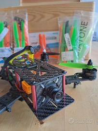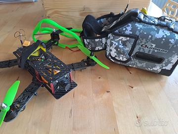 quadricottero FPV drone Racer autocostruito. Anzianotto ma ottimo per chi comincia. Regalo una batteria per radio ed una per visore. A parte posso vendere altre batterie. Manca solo la radio e la ricevente per cominciare a volare