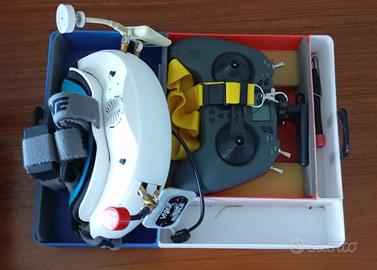 Vendo drone Gep-TG con occhiali Eachine EV200D, Radio Jumper T-Lite V2 con ELRS, 6 batterie 2S per drone e batterie Li-Ion per occhiali, caricabatterie con alimentatore, eliche di ricambio. Unico difetto è un pixel rovinatonel visore di sinistra.