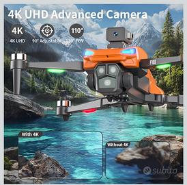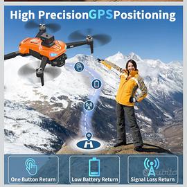 Tripla Evitazione Ostacoli: Vola sicuro con questo drone GPS grazie a posizionamento, flusso ottico e sensori eliche per prevenzione collisioni 360°. Hovering auto stabilizza il drone anche col vento. Perfetto per principianti!