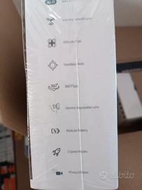 Vendo drone come da foto, nuovo, ancora imballato. Vendo per doppio regalo. La confezione contiene: - Un drone - Un controller - 2 batterie con cavetto USB per ricarica Caratteristiche: Telecamera con doppia lente e regolazione angolo da remoto, Streaming live FPV 5GHz, Sensore di flusso ottico, Volo a traiettoria personalizzabile, Controllo di gravità, Modalità acrobatiche