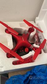 Drone rosso con telecomando ma senza batteria e cavo di ricarica. Nuovo.