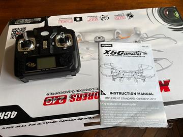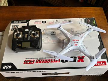Drone Syma X5C Explorers 2.4G completo in confezione originale con cambio ali, accessori, con 6 batterie, mai usato. Dimensioni scatola 53x31x10