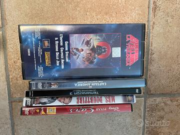 DVD: captain America (ancora imballato), Terminator 3, mrs Doubtfire, Cars. VHS: trilogia Guerre Stellari. Tutti originali. Vendo in blocco a 10 euro.