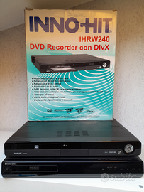 Vendo ,un lettore dvd hitachi htd-k160 con amplificatore integrato dolby digital e relative 5 casse e subwoofer a 150 euro trattabili ; un dvd recorder Inno-Hit ihrw 240 a 100 euro ; un dvd recorder Samsung Sh893 a 100 euro ; un decoder satellitare Humax IRCI 5400 a 80 euro. Le spedizioni sono a parte .No perditempo.