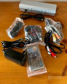 Completo di confezione originale, libretto di istruzioni, cavi, telecomando, auricolari e borsello.