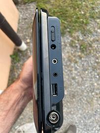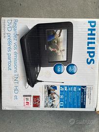 Dvd portatile philips con decoder dvbt integrato, usb , uscita a/v e uscita cuffia e telecomando. Usato pochissimo come nuovo.