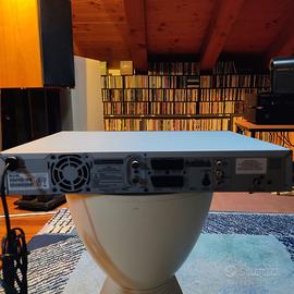 Questo DVD recorder è dotato di un’unità hard disk (HDD) incorporata e consente di registrare oltre 130 ore di video. Il DVD recorder può essere utilizzato con la massima flessibilità: è infatti possibile conservare le registrazioni sull’hard disk o copiarle su un DVD registrabile per riprodurle successivamente. In ottime condizioni, segnalo solo strisci superficiali sulla parte superiore. In virtù dell'uscita coassiale di cui è dotato può essere usato anche come meccanica cd . Conpleto di manuale e telecomando. Dato le molteplici possibilità d'uso se richiesto invio link manuale per tutte le info a riguardo