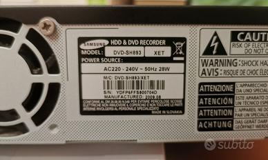 DVD recorder Samsung DVD-SH893 con HD da 160GB e telecomando che comanda 4 apparecchi diversi.