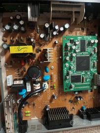 DVD recorder Samsung DVR-R151. Il lettore si accende e legge il DVD ma nel TV arriva solo l'audio e non si vede nulla. Non si vede neanche la schermata iniziale appena si accende. Potrebbe essere la scheda audio ma non saprei. Io lo avevo acquistato su un mercatino e non conosco la sua storia, a me non ha mai funzionato. Non ha il telecomando e non ha nessun accessorio o cavo. Ho fatto delle foto all'interno e sembra integro. Può essere usato per i ricambi o per chi volesse provare a riportarlo. Il lettore DVD riconosce il disco e parte. Però non c'è video. Lo vendo nello stato in cui si trova.