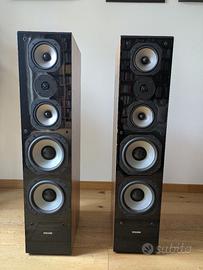 Vendo coppia di diffusori Dynavoice Challenger M85 EX V3, acquistati nel 2013. Sono un po' rovinati (qualche segno/graffio, un buco in una griglia, diversi piedini delle griglie rotti, una cupola antipolvere ammaccata), ma suonano benissimo.