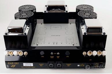 Tim de Paravicini, che non è estraneo a percorrere strade meno battute, si è messo a progettare un amplificatore in grado di offrire la "magia" del triodo pur avendo una potenza sufficiente per supportare una gamma ragionevole di diffusori. Il risultato è l'EAR 861. Questo amplificatore è un vero e proprio colpo di fulmine. Il compatto chassis cromato e smaltato nero, con le sue gabbie per le valvole dal gusto retrò e gli imponenti trasformatori con la parte superiore cromata, susciterà sicuramente l'entusiasmo di qualsiasi amante delle valvole.