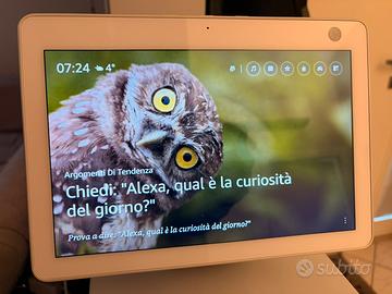 Vendo Amazon Echo Show 10 in ottime condizioni, usato ma perfettamente funzionante. Il dispositivo è stato tenuto con cura presenta solo un difetto estetico sull’alimentatore.